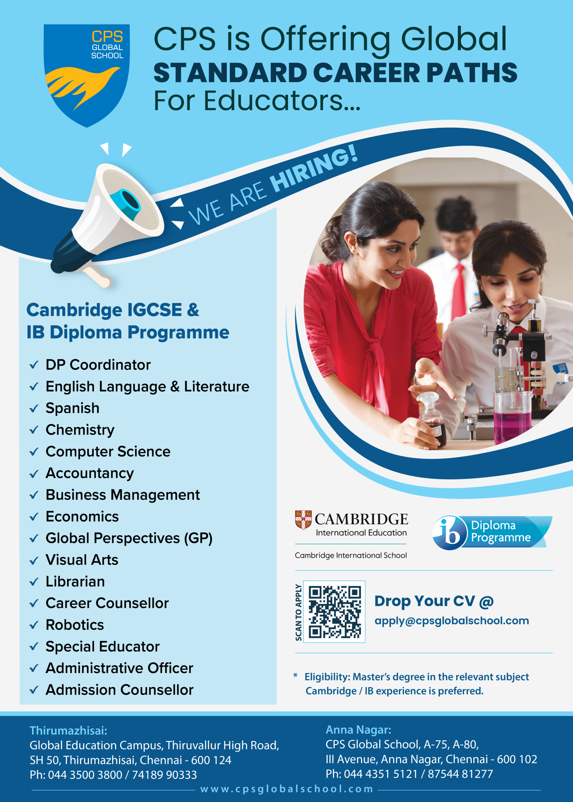 CPS Global School has been honoured with the Grand Jury Award for Holistic Development Champion, ranked #1 in Tamil Nadu & Chennai and #2 in India, celebrating our dedication to nurturing global citizens with balance, creativity, and character. Glorious wins, consistent brilliance – CPS doesn’t just chase excellence; we define it!