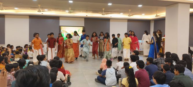 ”விவசாயிகள் சேற்றில் கால் வைத்தால் தான் , நாம் சோற்றில் கை வைக்க முடியும்,”பொங்கல் என்பது நம் வாழ்வில் மகிழ்ச்சி, வளம் மற்றும் அடையாளத்தை வெளிப்படுத்தும் விழாவாகும். “விவசாயத்தின் வாழ்வு, உழவர்களின் பெருமை” போன்ற முக்கியத்துவத்தை உணர்த்துகின்றன.. மாணவர்களுக்கான பொங்கல் நடவடிக்கையில், ஒன்றாம் வகுப்பு மாணவர்கள் தவளை ஓட்டம், இரண்டாம் வகுப்பு மாணவர்கள் பலூன் உடைத்தல், மூன்றாம் வகுப்பு மாணவர்கள் நொண்டி அடித்தல் , நான்காம் வகுப்பு மாணவர்கள் முறுக்கு கடித்தல் , ஐந்தாம் வகுப்பு மாணவர்கள் குட்டிக்கரணம் அடித்தல் போன்ற விளையாட்டுகளை மாணவர்கள் ஆசிரியர்களின் வழிகாட்டுதல் படி மிகவும் சிறப்பாக விளையாடி மகிழ்ந்தனர். ஆறாம்வகுப்பு முதல் பன்னிரண்டாம்வகுப்பு, மாணவர்களுக்கு பள்ளி வளாகத்திற்கு முன்பு கோலப் போட்டிகள் நடத்தப்பட்டு மாணவர்கள் மிகுந்த ஈடுபாட்டுடன் மகிழ்ச்சியாக தங்கள் திறன்களை வெளிப்படுத்தினார்கள். இறுதியில் நம் பள்ளி முதல்வர் ஸ்ரீதேவி வரகவி அவர்கள், அனைத்து மாணவர்களுக்கும் ஆசிரியர்களுக்கும் பொங்கல் நல்வாழ்த்துகள் கூறியதுடன், விழா இனிதே முடிவுற்றது.
