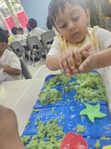 Today, in EY2, our little learners went on an underwater adventure with kinetic sand! With eager hands and bright smiles, they moulded sea animals while building fine motor skills and exploring ocean vocabulary. The soft, soothing sand offered a calming sensory experience, turning every squish and shape into a moment of joy and creativity. What a magical way to learn through play!