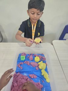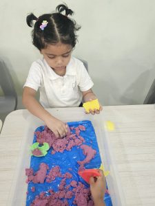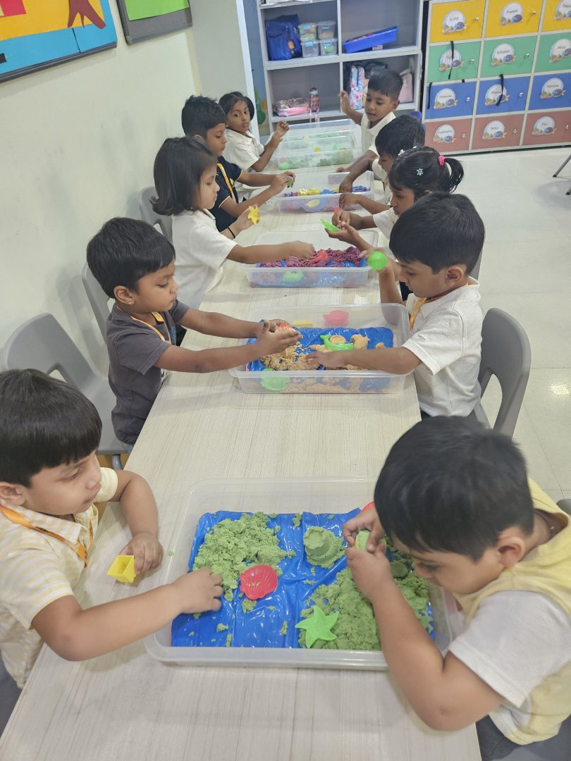 Today, in EY2, our little learners went on an underwater adventure with kinetic sand! With eager hands and bright smiles, they moulded sea animals while building fine motor skills and exploring ocean vocabulary. The soft, soothing sand offered a calming sensory experience, turning every squish and shape into a moment of joy and creativity. What a magical way to learn through play!