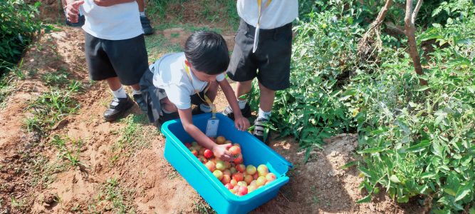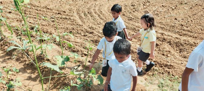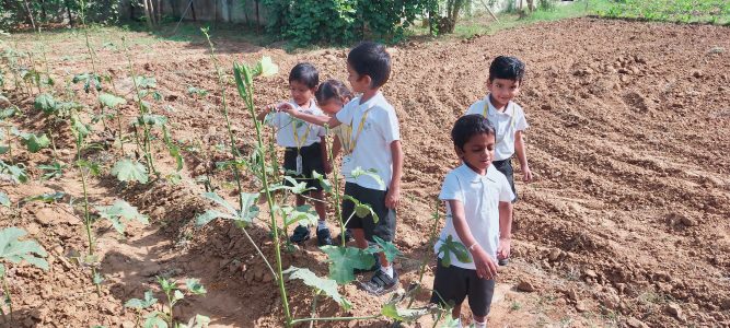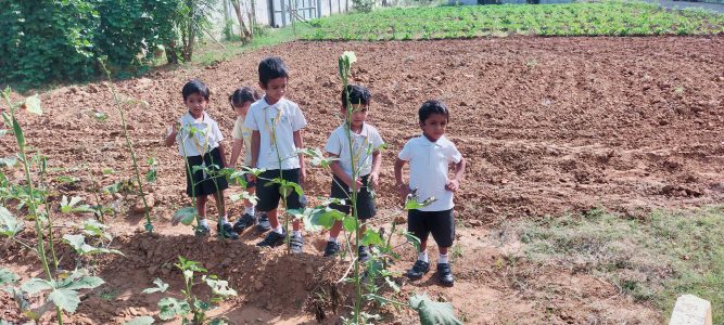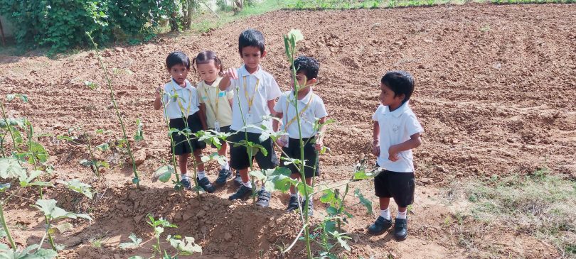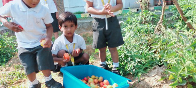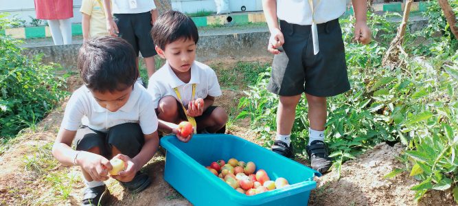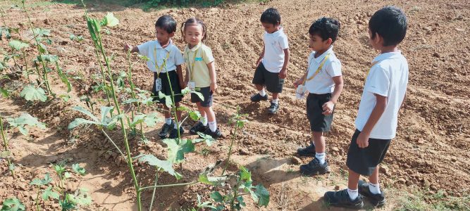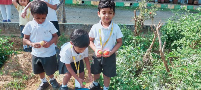 In our school garden, our kids saw different flowers, fruits, vegetables and