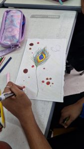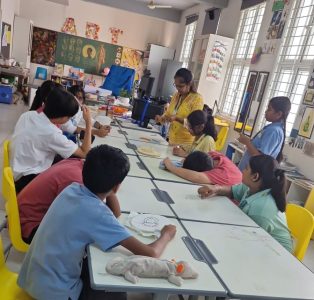 Beyond painting, students dabbled in embroidery, adding delicate stitches to their artistic repertoire, and engaged in recycling art, transforming discarded materials into stunning creations. Each session nurtured imagination and artistic confidence.