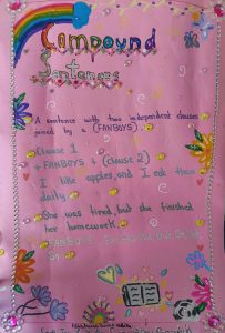 students beautifully illustrated their understanding of compound and complex sentences through vibrant, handcrafted posters.