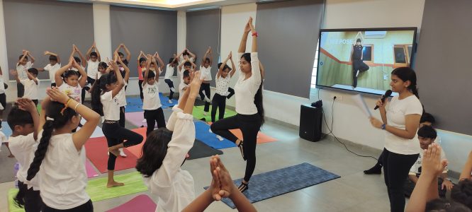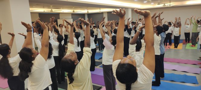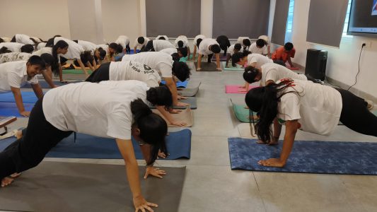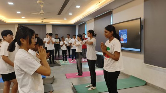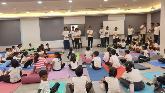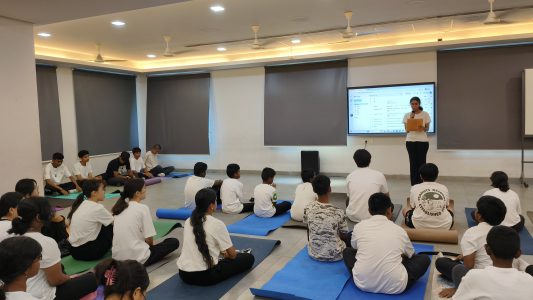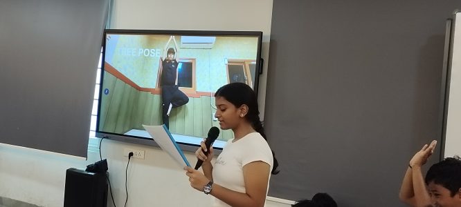 The session began with reflections on the holistic benefits of yoga—for both individuals and the planet. Students engaged in Surya Namaskar, simple yoga postures, and guided meditation, creating a calm, rejuvenating atmosphere. As B.K.S. Iyengar once said, “Yoga does not just change the way we see things; it transforms the person who sees.”