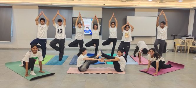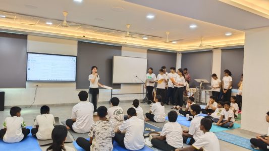 The event concluded with all students uniting in a spirited chorus of “Die with a Smile”—a fitting reminder that, like yoga, music has the power to connect hearts and uplift spirits. Adding to the spirit, classrooms during breaks were filled with music, turning the whole campus into a festival of sound and joy.