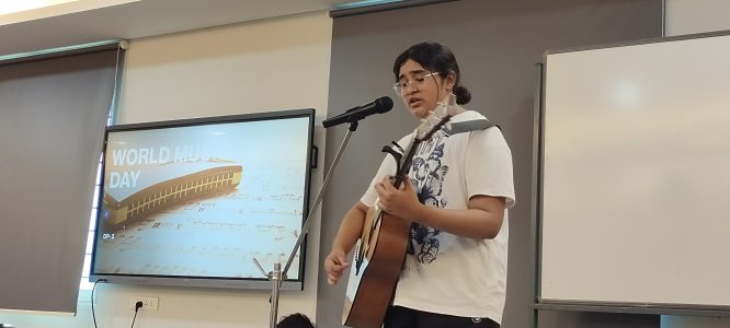 The celebration seamlessly transitioned into the rhythms of World Music Day. A solo vocal performance by one of our DP 1 students captivated the audience, setting the stage for a lively musical quiz featuring reversed lyrics and a riddle round where participants guessed popular melodies from clues. These activities brought joy, sparked laughter, and encouraged collaborative thinking.