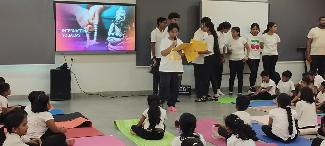 CPS Global School, Thirumazhisai, came alive with mindfulness and melody as students celebrated International Yoga Day and World Music Day, led by the spirited IBDP 2 students. The theme for this year’s Yoga Day, “Yoga for One Earth, One Health,” resonated deeply throughout the morning’s activities, emphasizing the interconnectedness of personal well-being and environmental harmony.