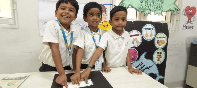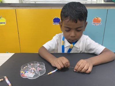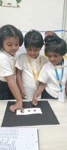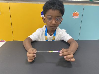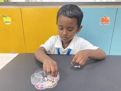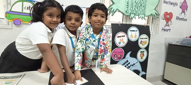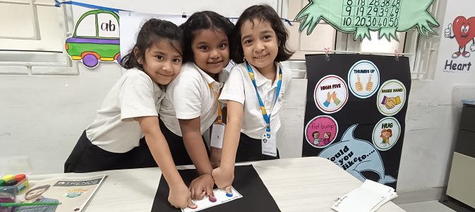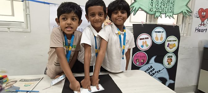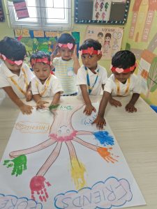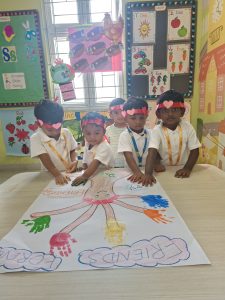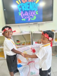 EY2 kids were actively involved in a bracelet-making activity with color beads and letter beads. The little ones were completely engrossed as they carefully picked the letters BFF (Best Friends Forever) and created elegant bracelets, proudly tying them on their friends’ wrists as “Wrist Wraps of Love.” It was a delightful way to strengthen their friendships and enhance fine motor skills. The wonder room sparkled with smiles, laughter, and the magic of togetherness.
