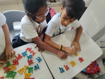 Our CIE 1 learners are learning the Hindi alphabets with interest and joy. They have been learning Swar (vowels) and Vyanjan (consonants), and recently revised everything they have learned so far.
