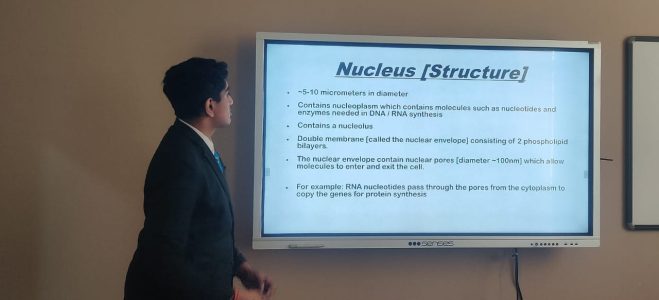 IBYR-1 Biology students recently presented an insightful seminar on cell organelles. The focus of their presentations included the origin and discovery of various organelles, as well as their crucial roles in cellular metabolic activities. Through their discussions, students highlighted how each organelle contributes to the functioning of living cells, ultimately supporting life processes. The seminar served as an engaging platform for deepening understanding of cell biology and its relevance to human life.
