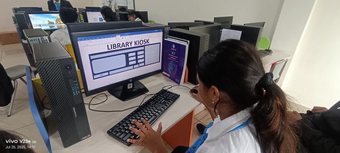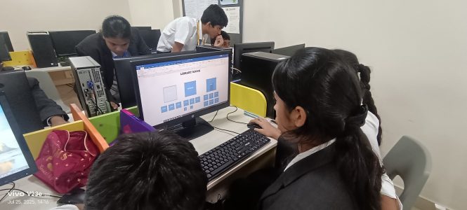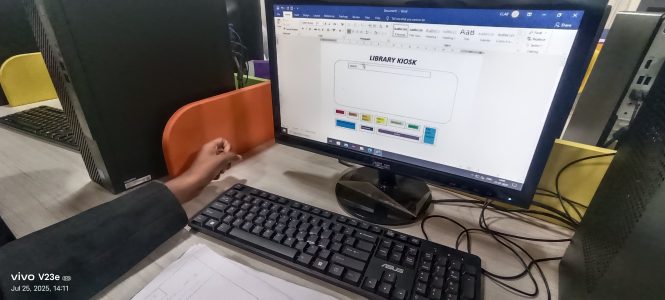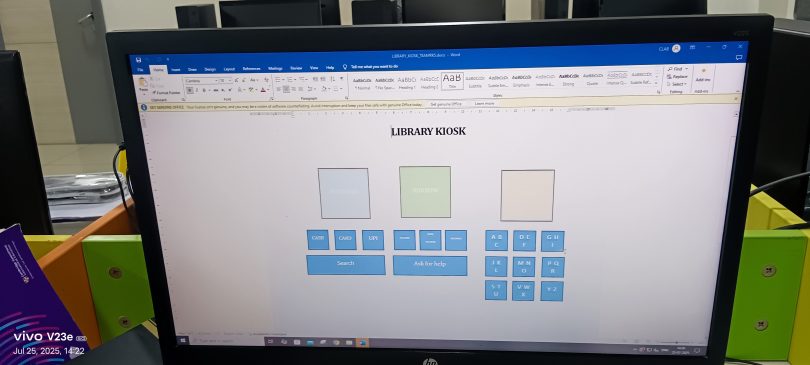 They used shapes, alignment tools, and text formatting to simulate real-life kiosk buttons such as Search, Borrow, and Payment Options. This hands-on task helped students understand how concept keyboards work in self-service systems, like those used in libraries and airports.