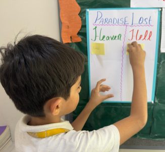 Each class participated in a variety of activities, including Poster-making, Book covers, interesting fun facts, a Vocabulary hunt, and creative exercises that explored the linguistic proficiency of celebrated authors. Through these hands-on experiences, students not only enhanced their understanding of language but also recognized its significance in effective communication and storytelling.