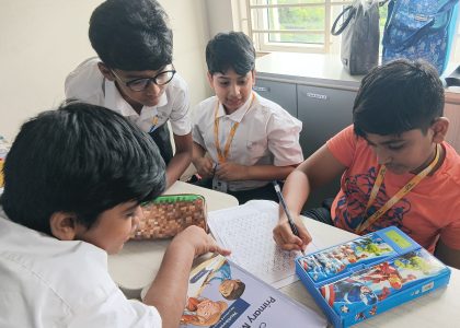 Our Grade 4 students explored the fascinating world of prime numbers using the Sieve of Eratosthenes, an ancient and effective method to find all prime numbers between 1 and 100. Through this hands-on activity, students learned to recognize number patterns and understood the concept of primes in a fun and visual way. The sieve method not only helped strengthen their logical thinking and problem-solving skills but also made learning math feel like solving an exciting puzzle. In addition to identifying 25 prime numbers, It also supports the understanding of related concepts like factors, multiples, and common factors. This engaging activity deepened their curiosity about numbers and sparked meaningful discussions about divisibility and factors.