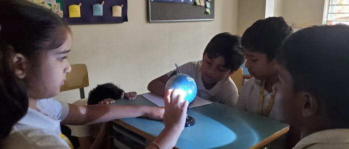 CIE 3 students explored the fascinating concept of day and night through an exciting hands-on activity. Using a globe and a torchlight, they simulated how the Earth rotates on its axis.