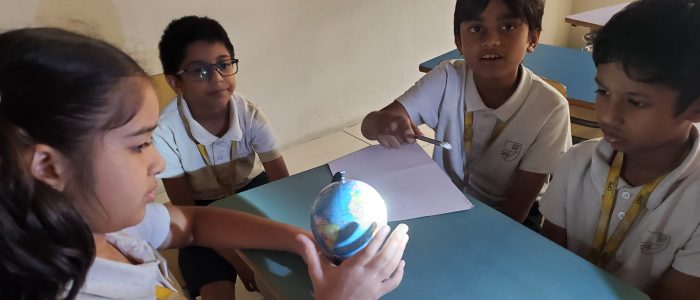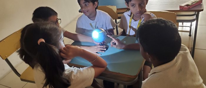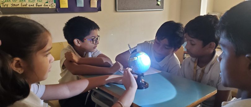 CIE 3 students explored the fascinating concept of day and night through an exciting hands-on activity. Using a globe and a torchlight, they simulated how the Earth rotates on its axis.