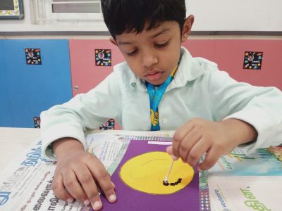 To mark World Emoji Day, our vibrant Early Years community explored the world of feelings and expressions through fun-filled activities.  EY1 Kiddies got hands-on with colours as they created emotional emoji faces using sponge dabbing. Each dab brought a new emotion to life, from happy to sad, surprised, and more, allowing our youngest learners to explore feelings playfully. EY2 Tots took part in a delightful emoji selfie session! They observed various emoji expressions and posed by mimicking them, learning how facial expressions connect to emotions. Giggles and smiles filled the room as they saw themselves reflect happiness and curiosity. EY3 Youngsters showed their artistic side by making creative emoji faces using earbuds. With every dot and stroke, they expressed unique emotions and discovered how a simple circle can speak volumes. Through these engaging and age-appropriate activities, our children not only explored the colourful world of emojis but also developed a deeper understanding of self-expression, emotions and creativity. At CPS Global School, we believe in celebrating every moment that adds joy to learning and the Emoji Fun Fest was just that!