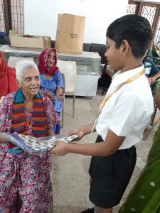 ‘A warm smile is the universal language of kindness.’ A smile is what all these aged people seek. The innocent smiles of the children immediately brightened up their day and made them feel much younger than they are. Our children performed a short cultural show for them which was accepted wholeheartedly. They moved their feet to the steps of our kids, they sang along and their happiness knew no bounds. It was a heartwarming emotion which glittered and sparkled through their eyes.