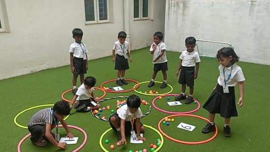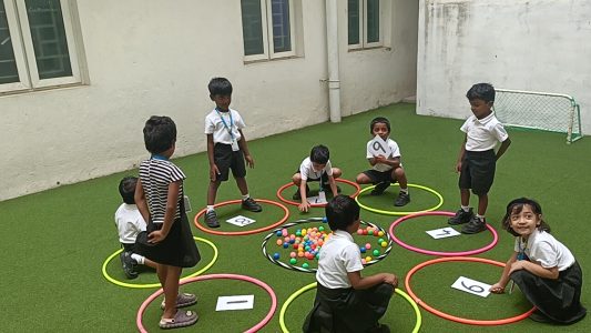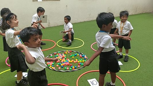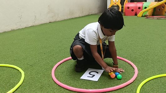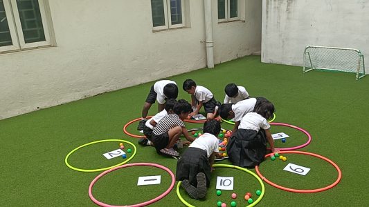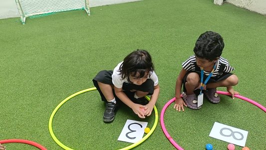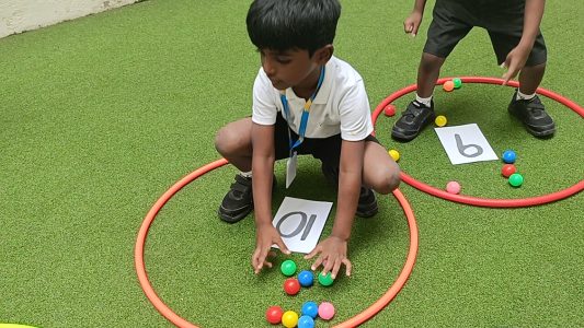 To make number learning more fun and active, our little explorers of EY3 B enjoyed a hands-on Number Counting Game using hula hoops and balls!