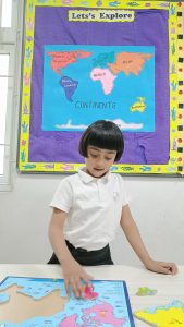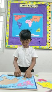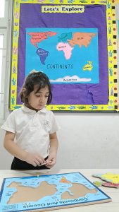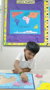The activity also strengthened their fine motor skills, as children turned, fitted, and pressed the pieces into place. With every continent they completed, their confidence grew, and they began to recognize names like Asia, Africa, Europe, Australia, North America, and South America.
