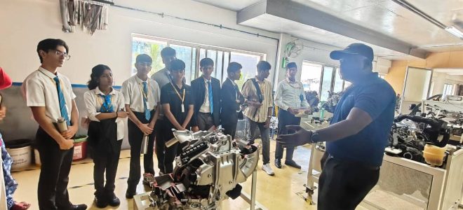 Our AS-level and IBDP students engaged in an educational visit to the Lanson Toyota dealership facility in Pallikaranai, offering meaningful exposure to real-world industrial practices. The trip, led by Mr Viswanath, brought together elements of physics, chemistry, business and economics, allowing students to observe how classroom learning translates into professional field operations.
