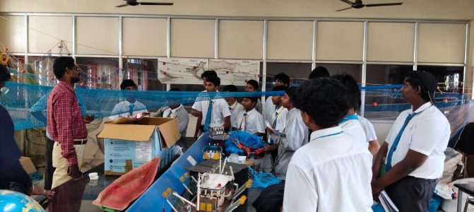 They began with an engaging introduction to the institution’s history, mission, and its pioneering role in advancing fisheries science and marine research in India. One of the highlights of the visit was exploring the marine systems and rearing tanks. Students observed various aquatic species—from ornamental fish to commercially important ones—being reared in controlled environments.