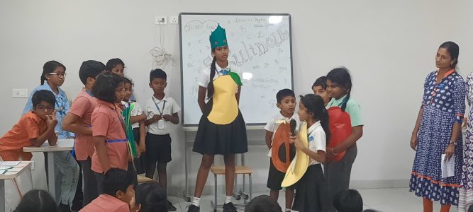 Each Hindi student across Grades 1 to 8 had dressed up as a fruit that they liked and showcased themselves to the entire school and explained about the importance of that fruit in Hindi.