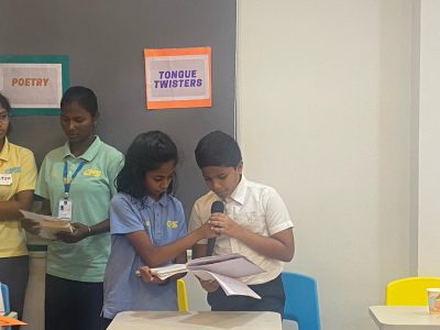 Adding a twist to the event, Akshatha and Varnika engaged in a lively tongue twister challenge, leaving the audience in awe of their linguistic prowess. Amidst the fun and games, fascinating English language facts were shared by our Grade 4 students, Aarnav and Dharshana, shedding light on the complexity of the language.