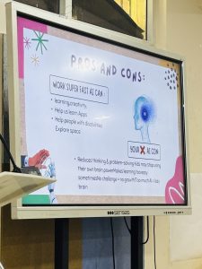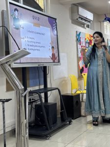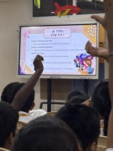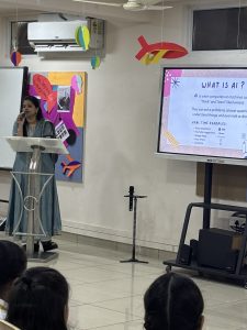 During the session, she presented a powerful and thought-provoking definition of Artificial Intelligence and elaborated on its diverse applications tailored for young learners. She categorized various AI tools that children encounter and can creatively engage with — including voice assistants like Siri and Alexa, personalized YouTube recommendations, facial recognition filters, and chatbots.