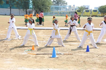 From the vibrant march past to the symbolic lighting of the Olympic torch, the stage was set for a spectacular display of talent and teamwork. Esteemed presence of our members of the management and the Chief Guest Mr. Shaik Mohammed Abbas (Founder and head coach of ‘The Skate University’) made the event more enlightening. The chief guest officially declared the sports meet open, setting off a whirlwind of activity and enthusiasm.
