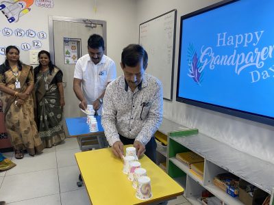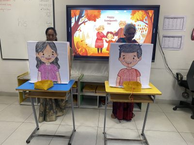 The day also featured a Story Time session, during which grandparents shared short stories and fond memories, creating a meaningful connection between generations. To further enrich the celebration, specially prepared videos of grandparents with their grandchildren were showcased, followed by a compilation of heartfelt wishes from our Early Years children. These moments brought smiles to every face and fostered a strong sense of togetherness. As a token of appreciation, grandparents were presented with a thoughtful takeaway, a flower bouquet accompanied by heartfelt wishes, along with a photo session in a retro 80s-style photo frame, creating cherished keepsakes. The celebration concluded on a note of joy and gratitude, standing as a reminder of the enduring love, values, and legacy that grandparents continue to bestow upon younger generations.