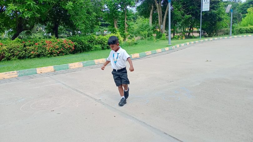 The school walkway turned into a colourful trail of action cues as the children joyfully followed chalk-drawn prompts. From walking through the line with careful balance, to popping imaginary bubbles, spinning with laughter, jumping high, walking with rhythm and clapping to a beat, each movement was designed to support their motor development in a playful and creative way.