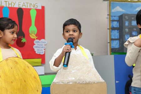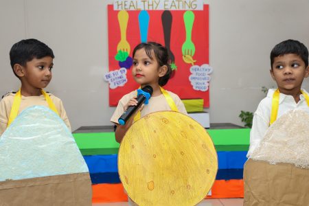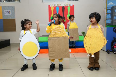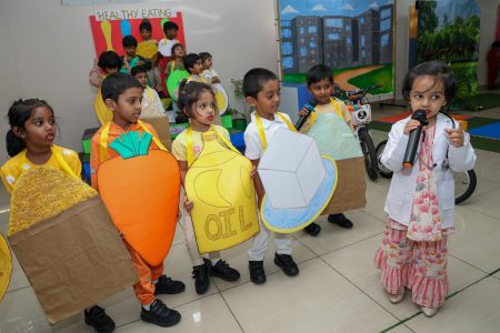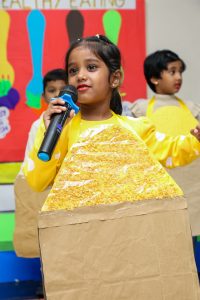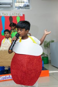 Children demonstrated how nutritious food choices give us energy, strength, and focus. Their playful enactments made “health bites” both meaningful and memorable.