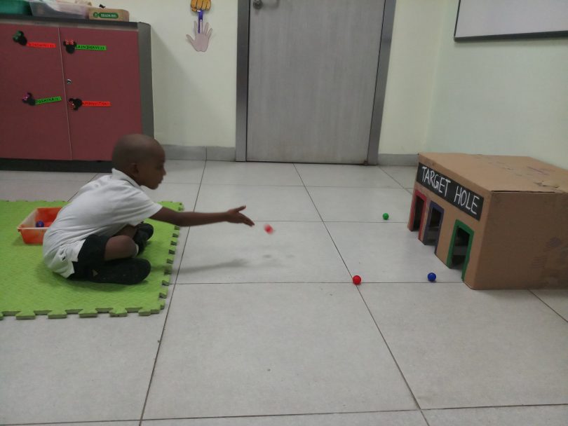 Play is an essential part of every child’s life and is vital for the enjoyment of childhood as well as social, emotional, intellectual and physical development. Our ELP1 children cherish school, as learning happens through fun activities. The children were in for a surprise to see their classroom turned into an indoor gaming arena. After clear instructions from their teacher, the little ones were all set to play the game. The kids had to choose a ball, aim and throw it in the hole of the same colour . The favourite colour balls were chosen first to play. Their steadfast determination and delight in playing the game was evident from their gleeful participation. “Target hole” – fosters the development of gross motor skills, bilateral coordination and visual motor integration. It covered all the characteristics of play such as active, adventurous, enjoyable, communicative, involved and meaningful.