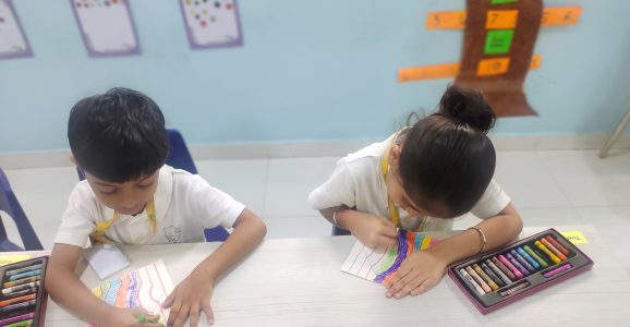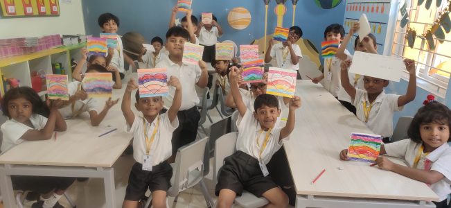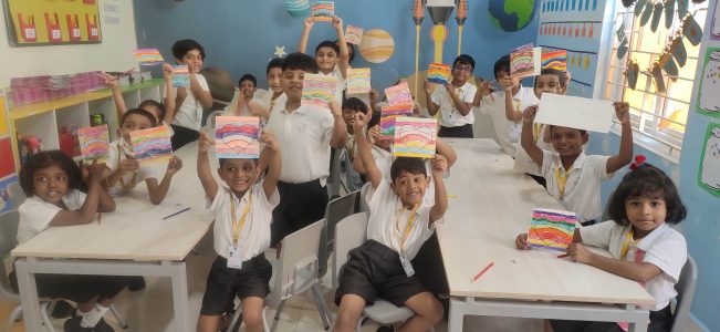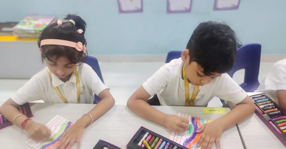 EY 2 enjoyed making creative wax painting cards for their dear and near ones.