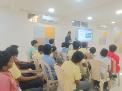 Mr. Sanjay introduced our young learners to the exciting world of GUVI and HackerKID, an online gamified platform designed to make coding fun, accessible, and engaging for students of all ages. Through his insightful session, students discovered how coding isn’t just about writing lines of code—it’s about thinking creatively, solving problems, and building projects that bring ideas to life.