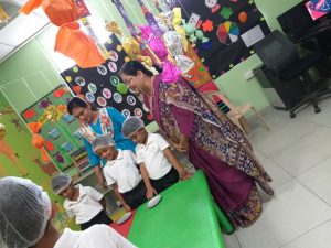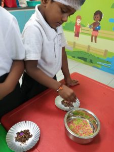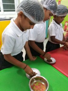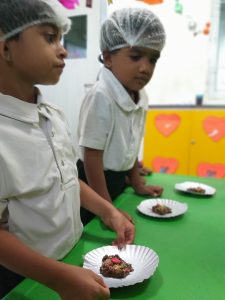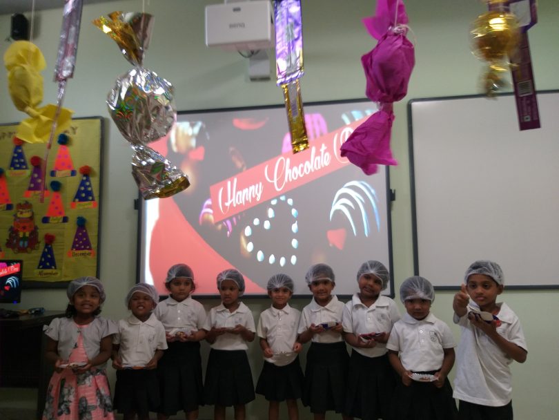 It was a day of chocolate bash @ CPSGS, TMZ. The ELP kiddos were elated when they entered into their‘yummy’classroom decorated with chocolates in many shapes and flavours. Our HOS and the academic co-ordinator were invited to the lip smacking extravaganza. Our zealous junior chocolatiers were all geared up to make Chocolate Nest. They followed the teachers’instructions and worked with their tiny hands like a pro to make the scrumptious choco-nest.A dash of chocolate sauce here, a sprinkle of choco chips there, and a topping of gems and wafers added the zing factor to the delicacy.Chocolates are nothing but pieces of heaven in your mouth and that’s exactly how our Tiny Tots felt when they indulged in their chocolatey preparation.