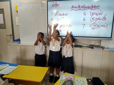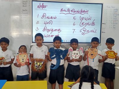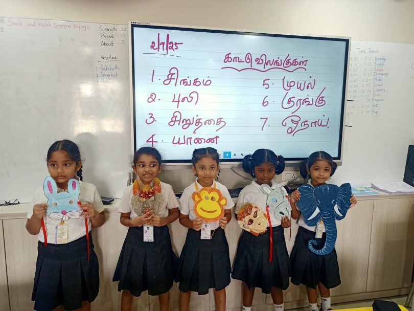 During our recent Tamil classes in CIE 1, learners enthusiastically explored the topic “Animals.” They learned to differentiate between wild and domestic animals, along with their habits, sounds, and food preferences. The session was interactive and filled with joyful learning.