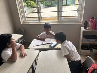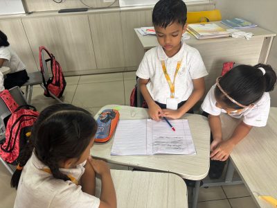 Meanwhile, CIE 2 learners took on a word grid activity. Using a set of letters, they created words ranging from two to six letters. The challenge encouraged them to think fast, spell accurately, and build their vocabulary with confidence. Their enthusiasm and pride in their work were wonderful to see!