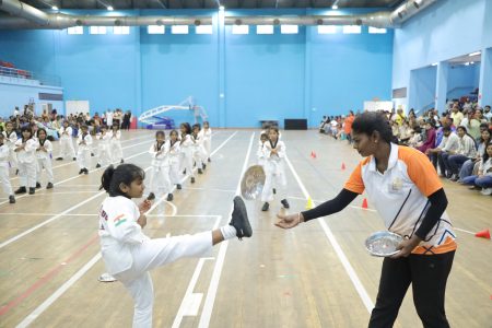 A breathtaking highlight of the day was the martial arts showcase, where our young performers impressed everyone with their Silambam, Kalaripayattu, and Taekwondo skills. Their powerful kicks, swift twirls, and rhythmic movements left the audience in awe, sparking pride and admiration all around!