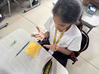 Our CIE 2 students embarked on an exciting journey into the world of numbers with the double take subtraction challenge – a creative activity designed to make subtraction both engaging and interactive. Armed with six digits, students were tasked with creating two three digit numbers. The twist? They solved one subtraction problem without regrouping and another with regrouping.