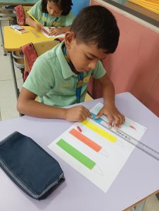Learning becomes magical when numbers join hands with creativity and our Grade 1 learners proved it beautifully! This week, students explored the world of measurement through a colourful and imaginative activity that turned simple paper strips into candles, trees, and flower stems. Each child received a strip of paper, measured its length using a ruler, and recorded the measurement confidently. What happened next was pure joy-those plain strips began transforming into festive Christmas trees, coconut trees, glowing candles with bright flames, and vibrant flower stems decorated with hand-drawn blossoms. With crayons, markers, and great excitement, students created art that showcased not just creativity, but mathematical understanding too!