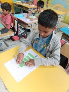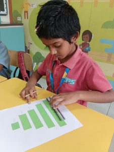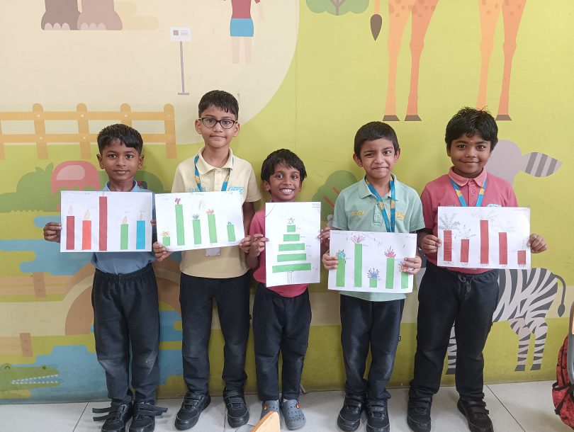 The activity encouraged children to use a ruler correctly, read and record measurements, observe length differences, develop fine motor and drawing skills, and express creativity freely. The classroom buzzed with conversation, curiosity, and teamwork. Students compared lengths, shared ideas, and proudly displayed their colourful masterpieces. The final display was a beautiful garden and celebration wall-full of candles, flowers, and trees-reflecting how joyful learning can be.