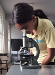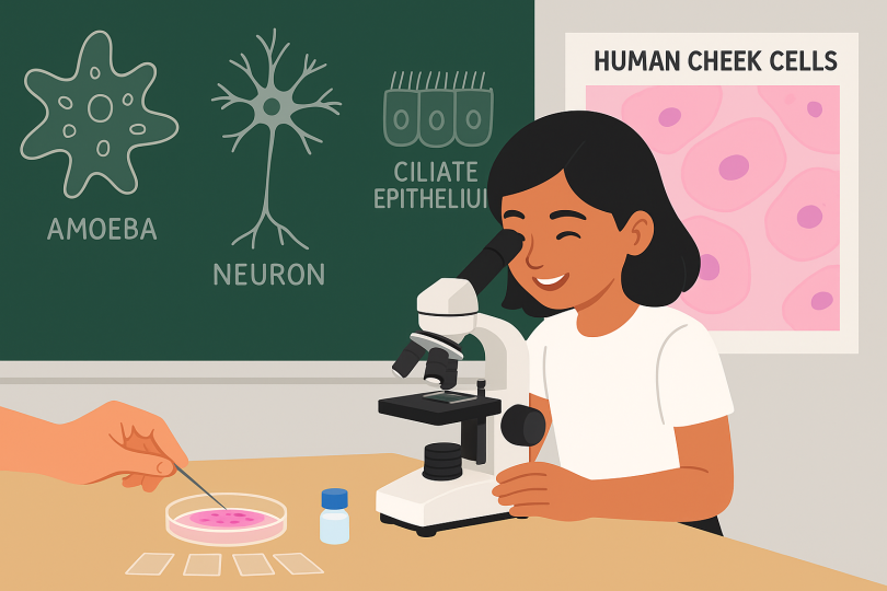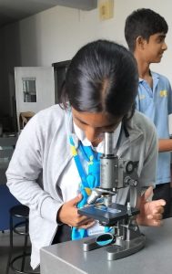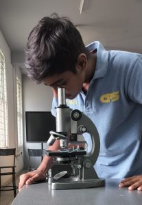 The biology class of IGYr 1 learnt about the parts of a microscope and their functions. Further, also observed an amoeba, ciliated epithelium, neuron, cheek cells, etc. They observed human cheek cells under the microscope which were taken from a student volunteer and compared it with those of the permanent slide . They observed the extraction, staining and mounting of the temporary slide of the cheek cells and viewed them under the microscope.