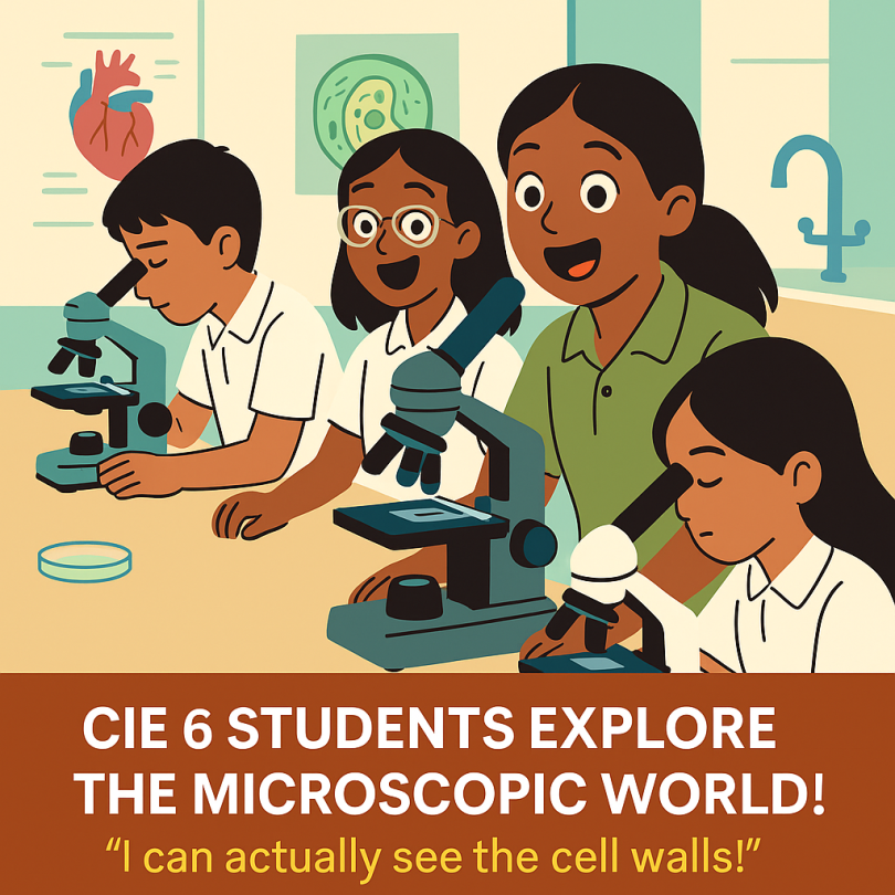 Our CIE6 students had an exciting visit to the Biology laboratory this week, where they used microscopes to examine plant cells and palisade cells. The enthusiasm was infectious as students took turns observing cellular structures for the first time.