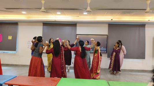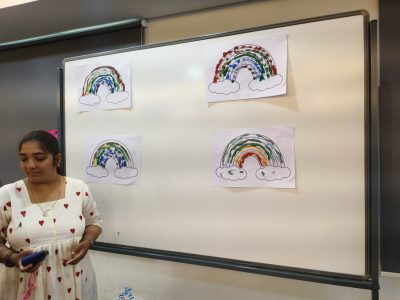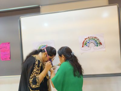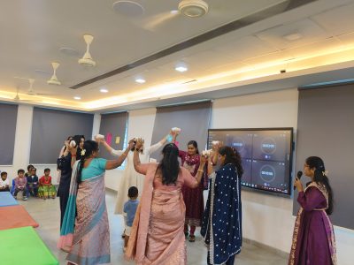 Next, our little stars from EY1, EY2, and EY3 melted hearts with a soulful song performance, radiating innocence and joy. The festivities continued with a series of exciting interactive games that brought out the playful spirit in every mom. From quick reflexes in “Touch Me Not,” to the coordination in “Cup Crusaders,” the glitz of “Paperlicious Runway,” and the colour splash of “Cone-jurying Rainbow,” each game brought joy, laughter, and cheerful energy to the room.