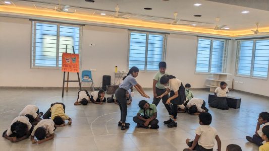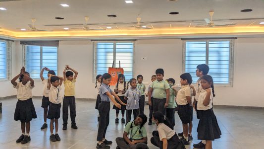 In the lower grades, such as Grade 1 and 2, students were engaged in playful yet impactful improvisations, tackling themes like environmental conservation and problem-solving.