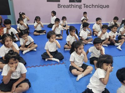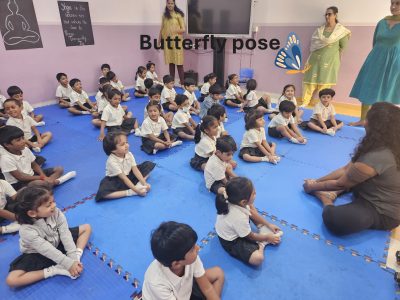 Today, our little learners had a refreshing and calming yoga session — and what made it extra special? It was beautifully conducted by one of our enthusiastic parents. They practiced the Butterfly Pose, gently flapping their knees like fluttering wings, and enjoyed a peaceful moment in Vajrasana, followed by calming meditation. The session helped the children connect with their bodies and mind, teaching them that fitness can be fun and peaceful. It was heartwarming to see their happy faces as they stretched, breathed deeply, and embraced a healthy routine.