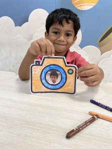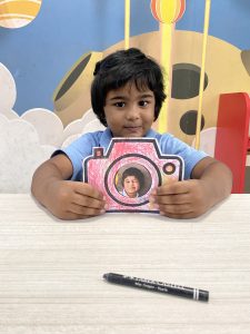 Early Years 3 took their creativity a step further by experimenting with photo frames, posing perfectly within them, and drawing their favourite pictures to make colourful “reels.”