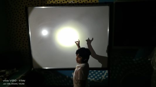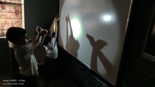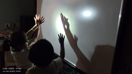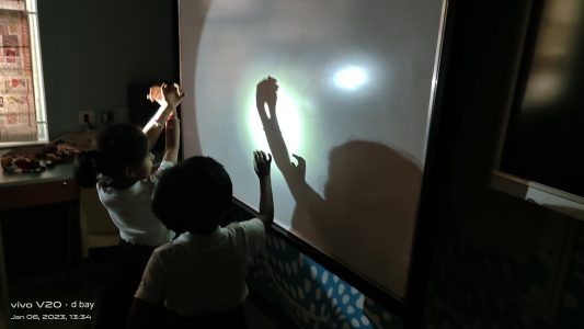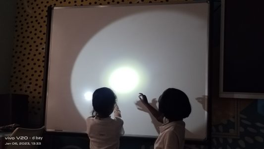Playing with light and reflection is always a magical experience for children. The thrill that filled the air had no words to express.