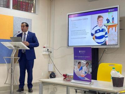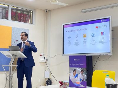 On 15th February 2023, Mr. Ashwin Sreekumar, representative of University of Queensland (South Asia) , an alumni and chair of the University of Queensland network in India visited and gave the most awaited prizes to our team of Students. He delivered a brief orientation about the University of Queensland and appreciated the efforts of the team. He also addressed our IGCSE and AS students queries on planning their future studies abroad. Having lived in Australia for over 16 years and his journey as an International student at UQ to becoming an Australian Citizen allowed him to guide and mentor students from first hand experience.